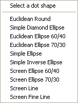The elliptical dots produced by the "Euclidean Ellipse" selections are most commonly used for screen printing, while the "Euclidean Round" selection is usually more suitable for flexography.