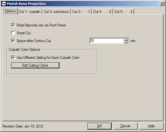 - Use Different Setting for Each Cutpath Color: Allows the use of different colors to be defined with different cut options. This driver supports a maximum of twenty (20) different cut colors.