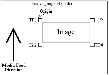 - As the print comes off the printer, note the edge that is to the lower right corner of the print. That corner will be referred to hereafter as the origin (TP1) of the print (see illustration).