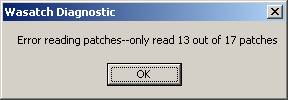 This interface is hard-wired to accept the 17 data points used in the file 'eyeone.ps' which is located in your 'X:\PSFILES' folder (X: being the letter of the drive on which Wasatch is installed). This is the only test pattern that will give you a correct result.