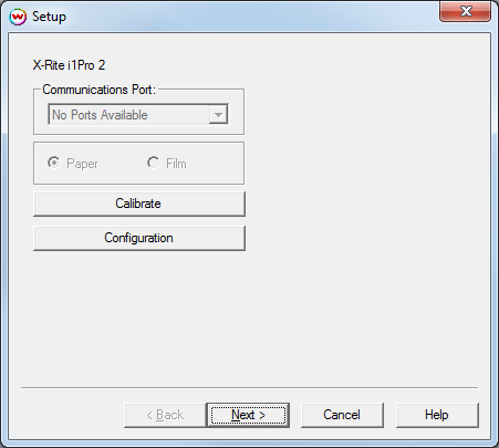 Click on Densitometers on the Calibration screen and choose X-Rite i1Pro 2. The following screen will be displayed: