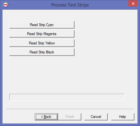After any one strip has been read, the button labeled Next will change to Finish. You may select Finish after reading any number of the strips to apply curves for only colors that you have measured. Colors that you did not measure will not be overwritten should curves already exist.