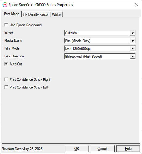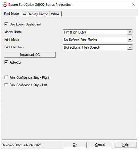 Print Mode Options (Epson Dashboard):
