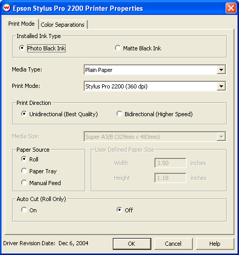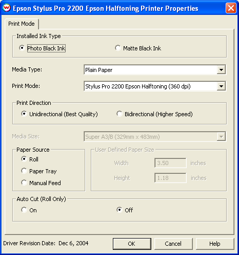 (Choose Epson Stylus Pro 2200 Epson Halftoning from the Printer Model list).