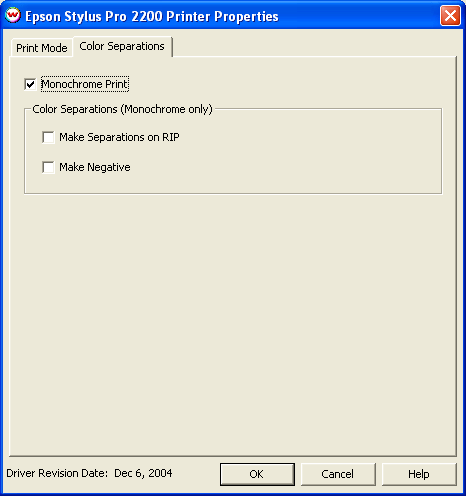 In addition, the Color Separations controls become active when Monochrome Print is checked.