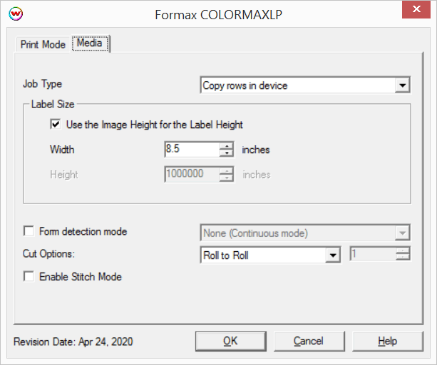Wasatch recommends using the Fast Layout feature with Formax COLORMAXLP printers. For additional details regarding the Fast Layout feature please see the Fast Layout help pages.