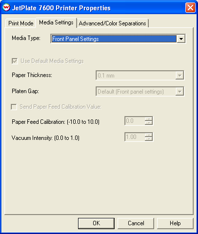 - Media Type: Choosing "Front Panel" uses the front panel settings of the printer. The choice of