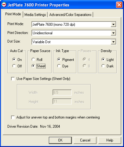 model of JetPlate 7600 printer that you are connected to. However, when using the