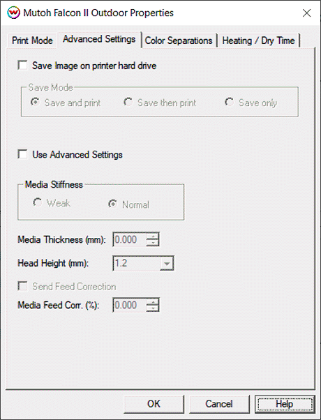 - Media Thickness and Head Height (On "Advanced Settings" tab)