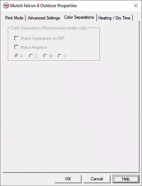 When you click on Color Separations, the following Properties page will be displayed:
