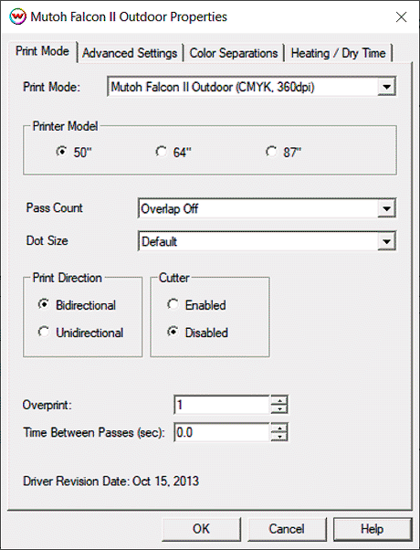 - Ink Dry Time (On "Heating / Dry Time" tab)