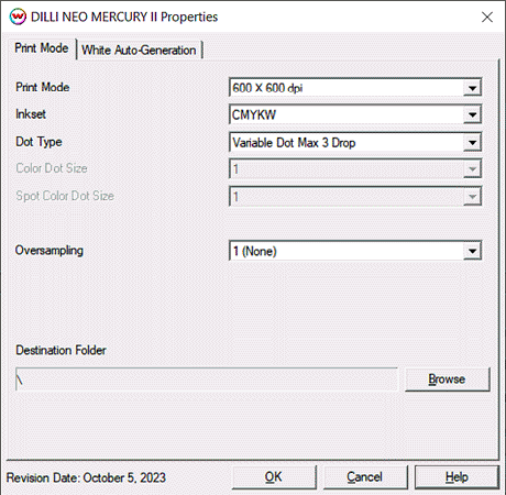 - Spot Color Dot Size: With a fixed dot type selected, set the dot size for the White/Varnish (1-3).