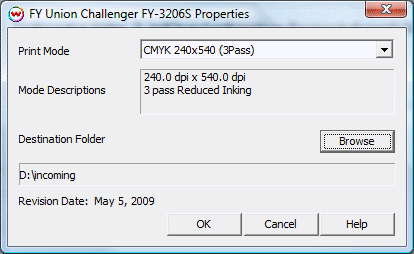 If you click on the Properties button next to the Printer Model window on the Imaging Configuration screen, the following control panel for this printer will be displayed:
