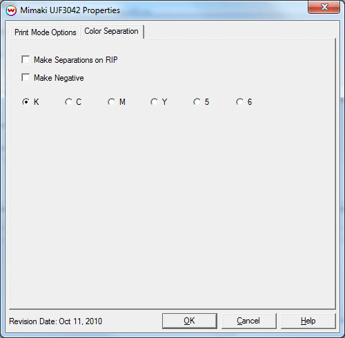- Separations on RIP: This will cause the RIP to separate the image into CMYK plates.