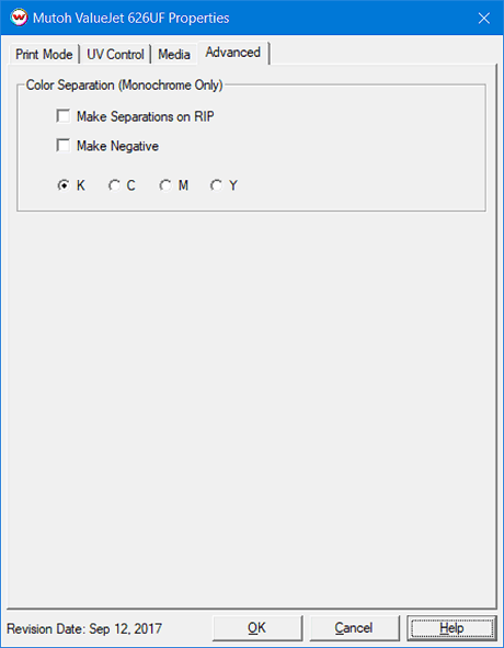 - Make Separations on RIP: This will cause the RIP to separate the image into CMYK plates.
