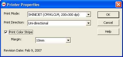 - Print Color Strip: This prints a small strip of each head along the opposite side of the docking station of the printer. It can be useful to determine whether jets have clogged, and also to keep unused heads running throughout a print. Margin allows you to set the distance between the color strip and the image.