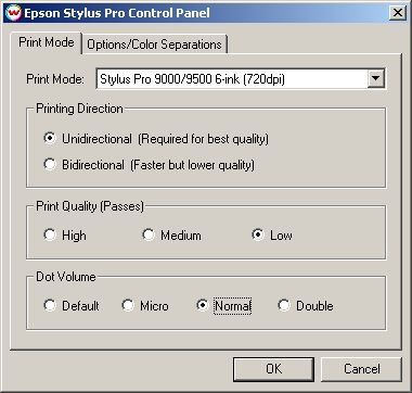 driver. The 'Default' setting for dot volume is the best setting for almost all normal printing. The other options may be useful to increase compatibility with special inks and