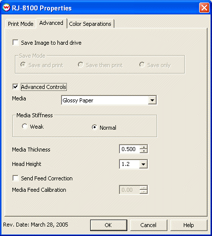 - Media Thickness and Head Height (On "Advanced" tab)