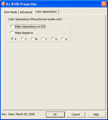 When you click on Color Separations, the following Properties page will be displayed: