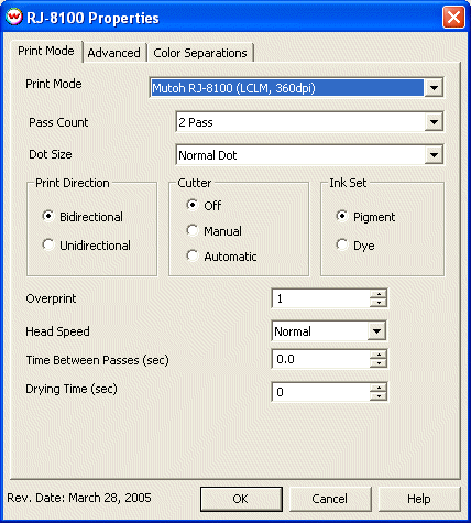 - Media Cut (On "Print Mode" tab)