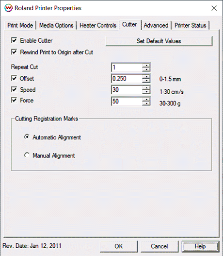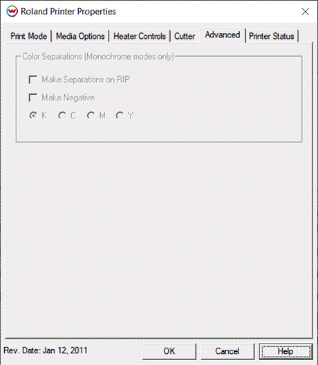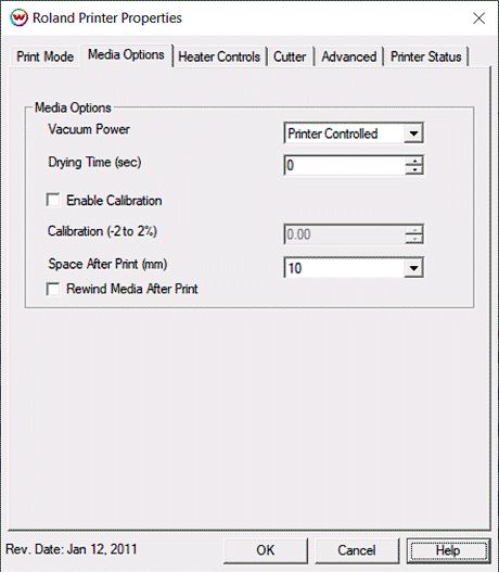- Rewind Media After Print: This will disable the sheet cut and move the media back to the beginning