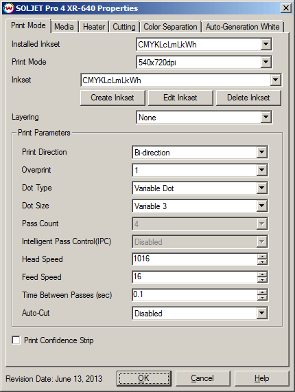 - Pass Count: Allows you to specify the number of passes the head will make over a particular line. A higher pass count has a better quality but a slower print speed.