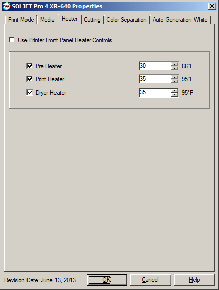 - Use Printer Front Panel Heat Control: If enabled, the printer will use the settings from the front panel of the printer.