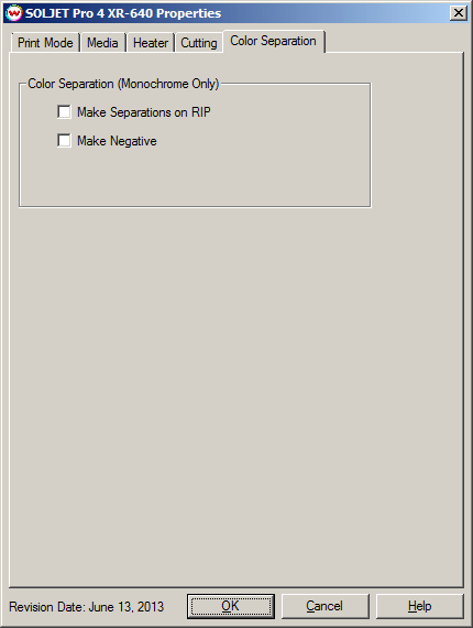 The Color Separations controls are the same as those of other printers, and are only available if a monochrome mode has been selected on the Print Mode tab.