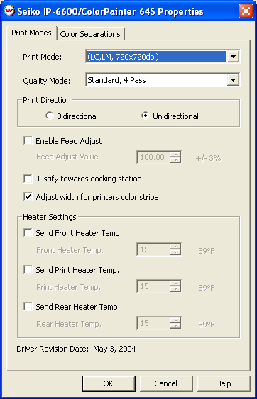 The Color Separations controls are the same as those of other printers, and are only available if a monochrome mode has been selected on the Print Mode tab.