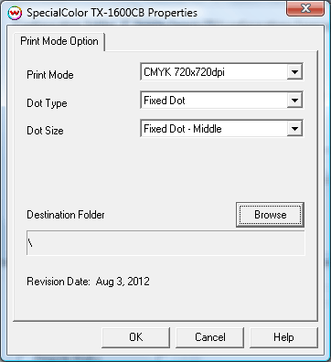 This page of the properties sheet allows you to select a print mode and the dot size.