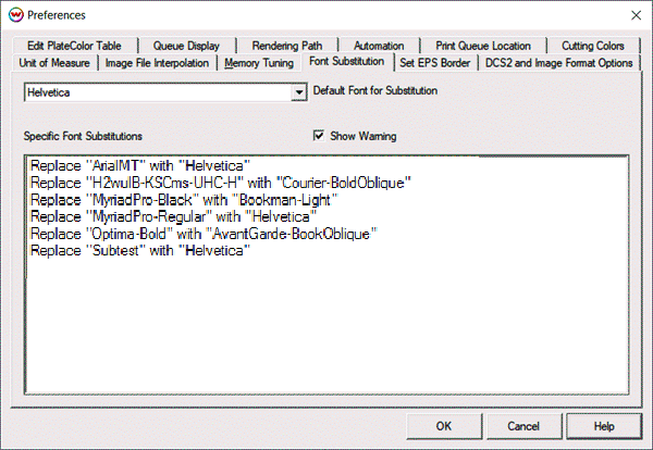 This window controls the way the RIP performs substitutions when it can't recognize a font requested by a PostScript job file.