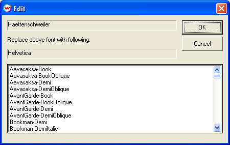 Important note for Asian typesetting users: When choosing substitutions, try to match the Encoding extension of the original. That is -83pv-RKSJ-H in most Japanese files from Macintosh.