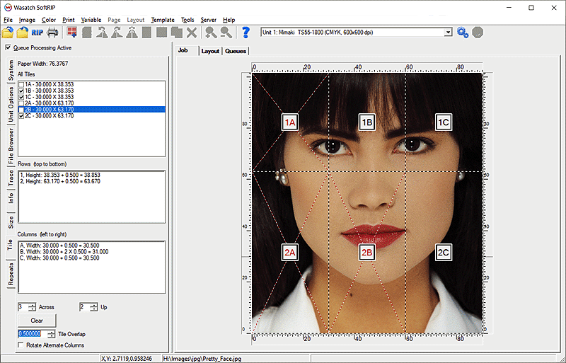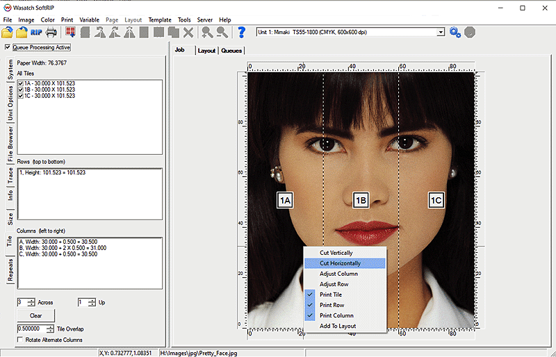 You can now start to process these tiles by clicking on Print, then either RIP and Print, RIP Only, or Add to RIP Queue. It is also possible to add these tiles to a layout by clicking on Image, then Add to Layout.
